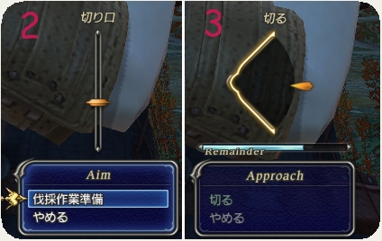 2:切る位置を決める(位置によって、採取しやすくなるアイテムが決まってます)